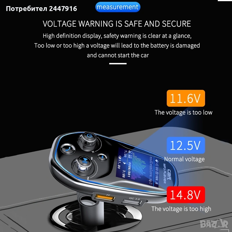 Трансмитерът поддържа възпроизвеждане на музика от USB флаш памет (чрез допълнителния USB Type-A порт) и microSD карта, което дава свобода да слушате любимите си песни без нужда от телефон.