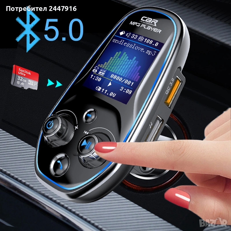 Стерео Bluetooth трансмитер с mp3 player и DSP еквалайзер
