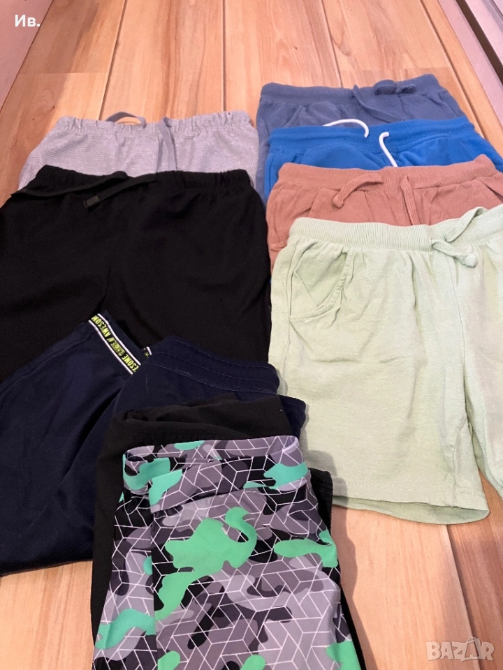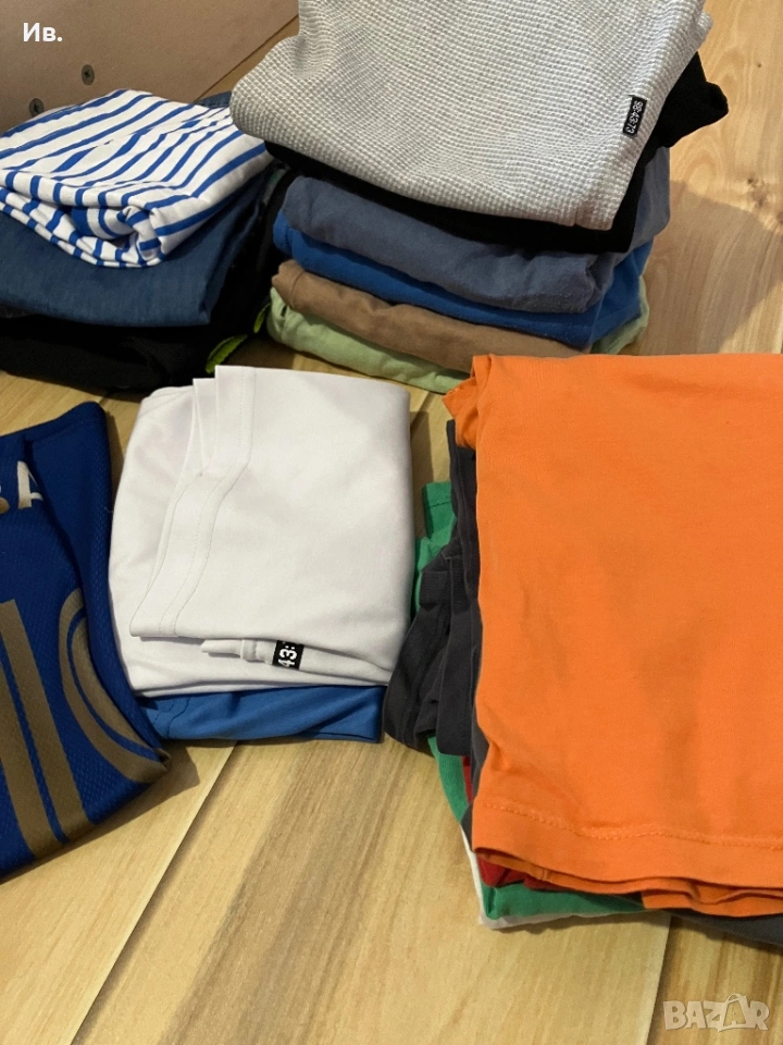 Цената е за целия лот. Включва тениски, къси панталони, бански. Дрехите са доста ползвани и на някои има леки следи от употреба. Подходящи за вкъщи или игра. Ризката и потника от 5та снимка са нови. Повечето са купувани от Пепко и Синсей
