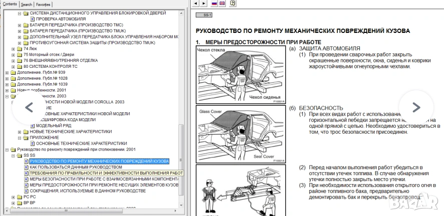 Ръководствата съдържат данни за ремонт, настройки на основните елементи от системата за управление на двигателя , променливото газоразпределение, инструкции за самостоятелна диагностика на автоматичната скоростна кутия,SRS-допълнителна система за обезопасяване, системи VSC, ABS, BA, TRC и др.Съдържат ел.схеми.