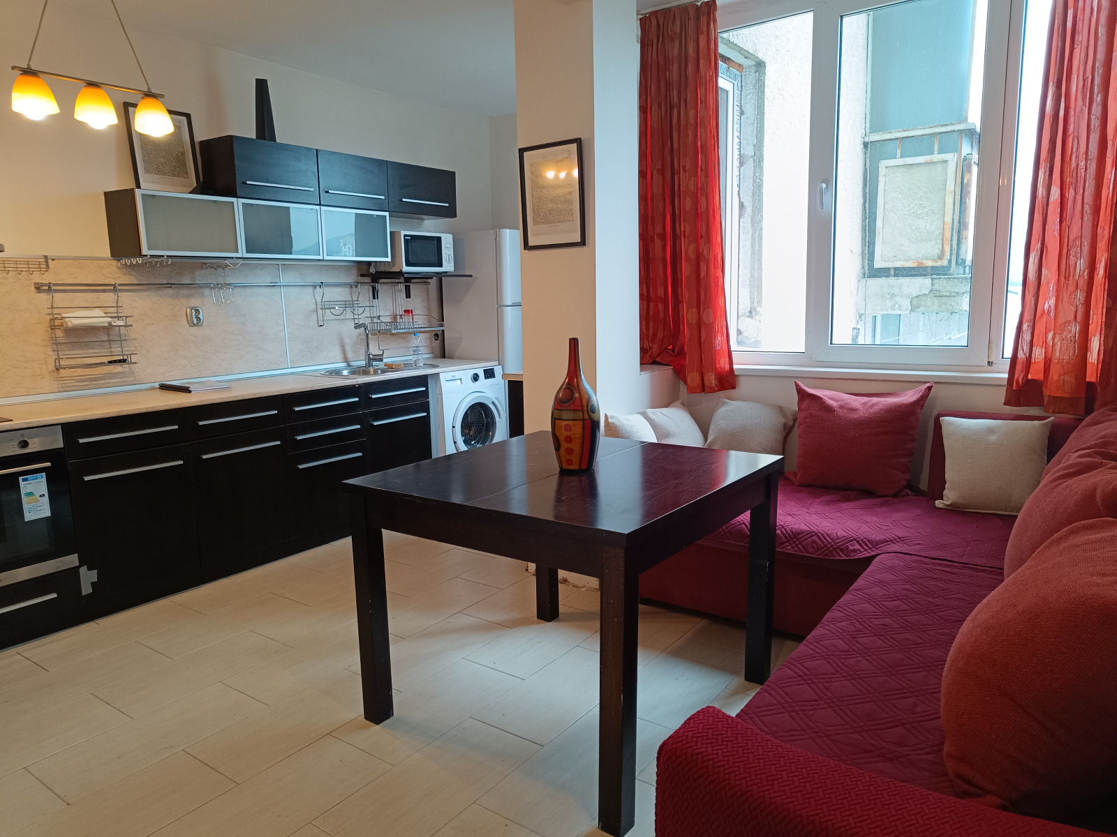 Апартаментът е в много добро състояние, напълно обзаведен с мебели по поръчка и готов за нанасяне: