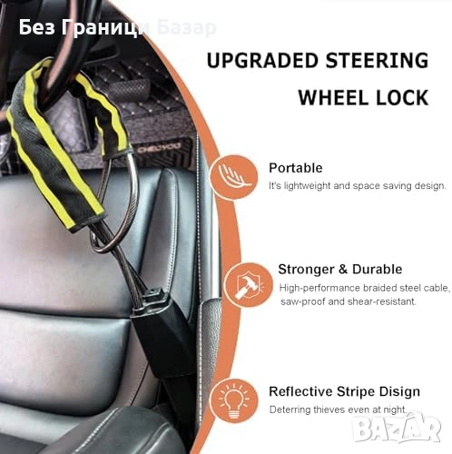 Нова Тежка заключалка за волан с отразителна лента универсална Антикражбена за кола