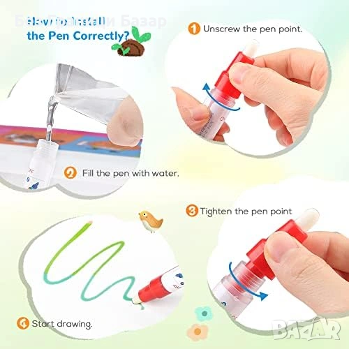 Нова Подложка за рисуване с вода за деца сгъваема образователна с 6 писалки и шаблони