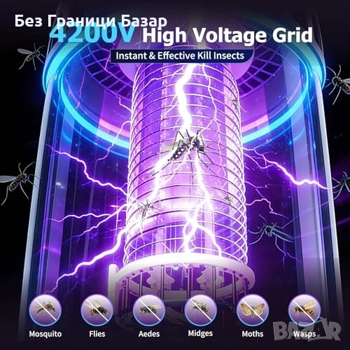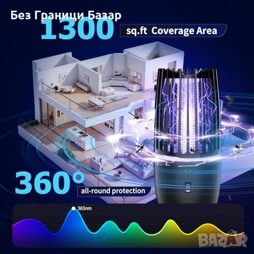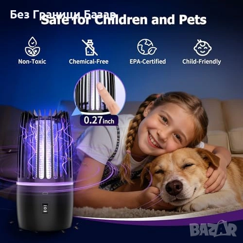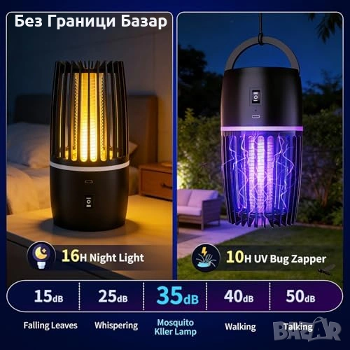 Нова UV лампа против комари 365nm 4000mAh тиха 2 режима Преносим унищожител