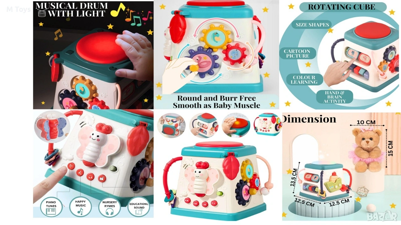 🎶🧠 Интерактивна образователна музикална кутия Забавление и учене в едно! 🌈 Перфектната играчка, която развива уменията на детето още от най-ранна възраст 👶 ✨ Характеристики: ✔️ Музика и светлини 🎵✨ ✔️ Различни бутони и активности ✔️ Въртящи се елементи и форми 🔄 ✔️ Звуци и мелодии за учене и забавление ✔️ Развива фината моторика и координацията 👶 Подходяща за малки деца 🌟 Стимулира логическото мислене и въображението 🎁 Чудесен подарък за бебе или малко дете