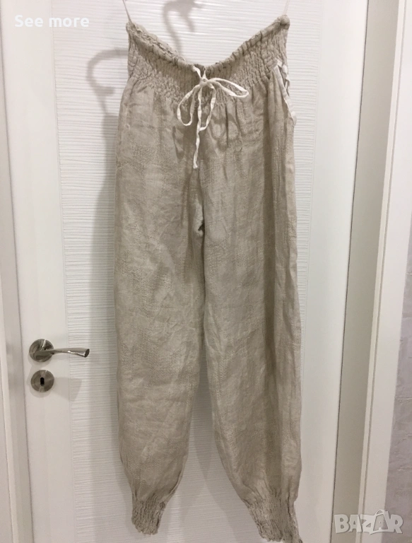 Mastro Moda 100% лен флорален панталон М! Дължина 103 см,талия еластична! Отлично състояние!