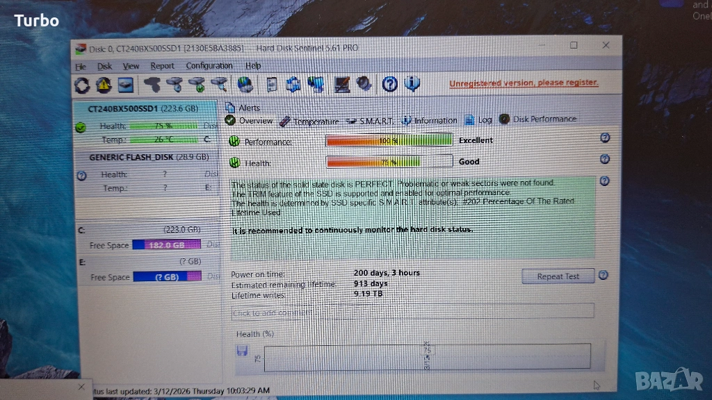 Памет: 256GB SSD диск, на 100% производителност. Може да се добави SSD NVMe диск или втори ССД диск на мястото на DVD-то.