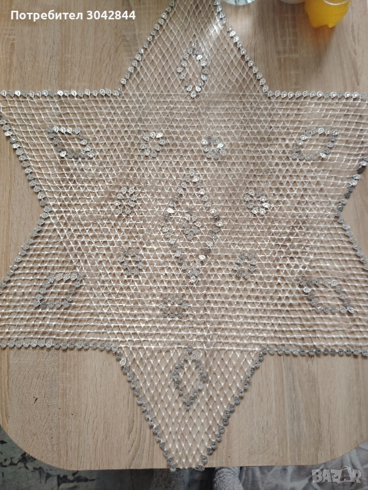 Декоративна покривка в сребристо с форма на звезда.
