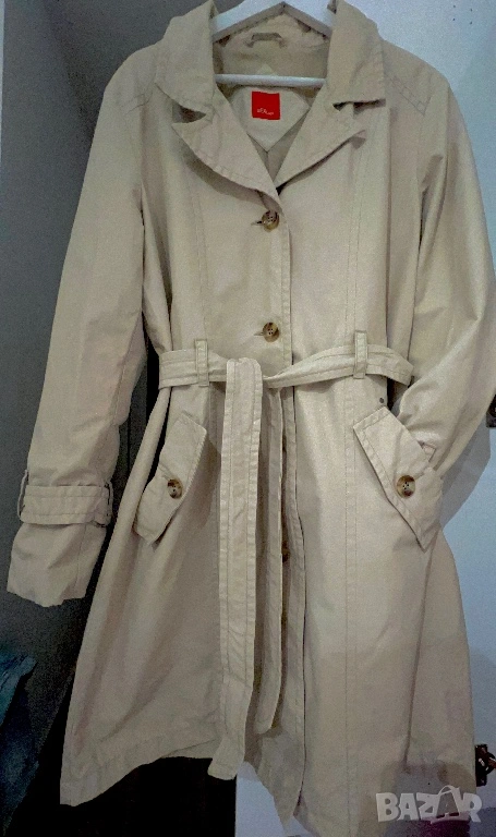 Красиво, кремаво палто / шлифер на марката s.Oliver. Размер S / М. Подходящо както за есента, така и за пролетта. Носено веднъж, без следи от употреба.