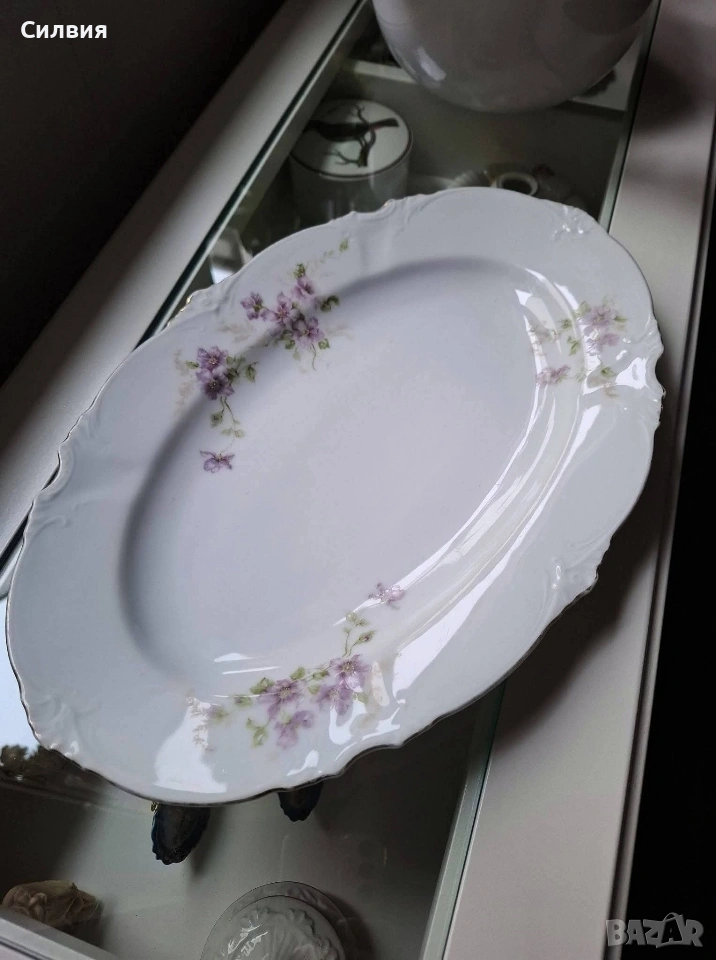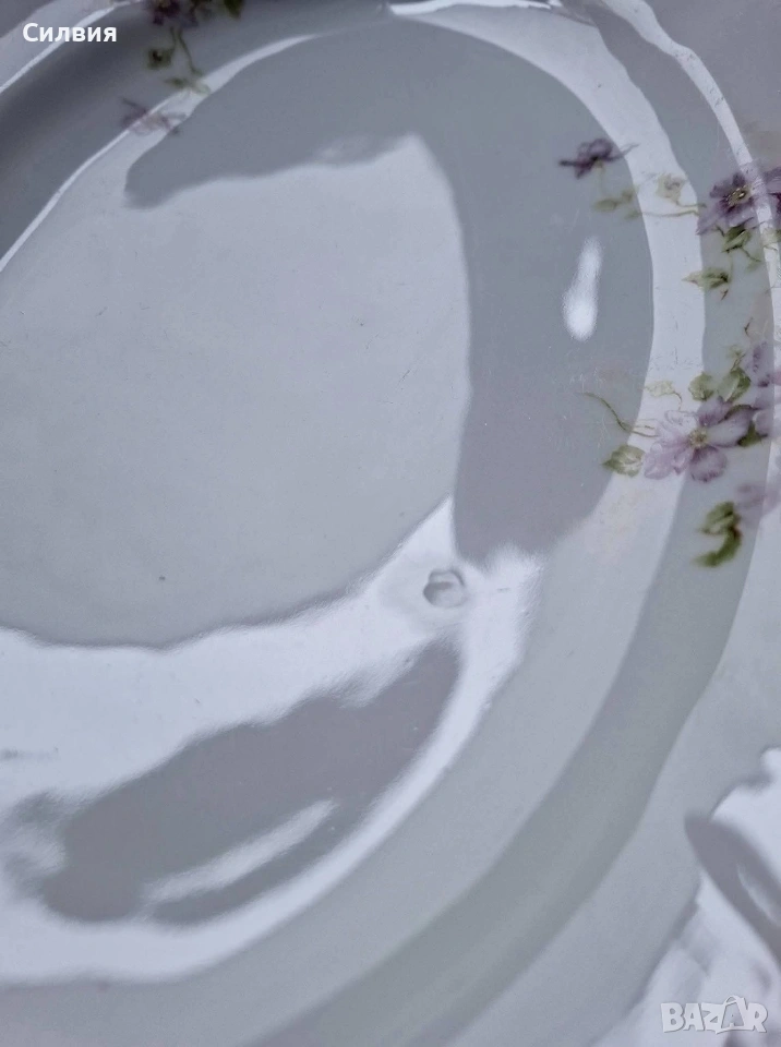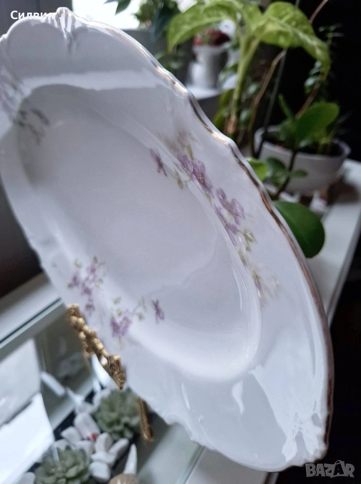 Плато⚜️Старинен порцелан с история и характер Изящна изработка и фини детайли, които привличат погледа. Чудесно допълнение към всяка колекция от порцелан или антики. ●Овално Плато: Размери: Дължина 36,5 см/ Ширина~ 24 см / Височина 4 см. С вълнообразен ръб, богато декорирано с флорални мотиви, Минимални забележки като следи от времето. Цена 3️⃣8️⃣€ 《74,32лв 》🪻..•´¨) ¸.•¨) 🌱... 🪻(¸.•¨¯`*•.🍃🪻🍃