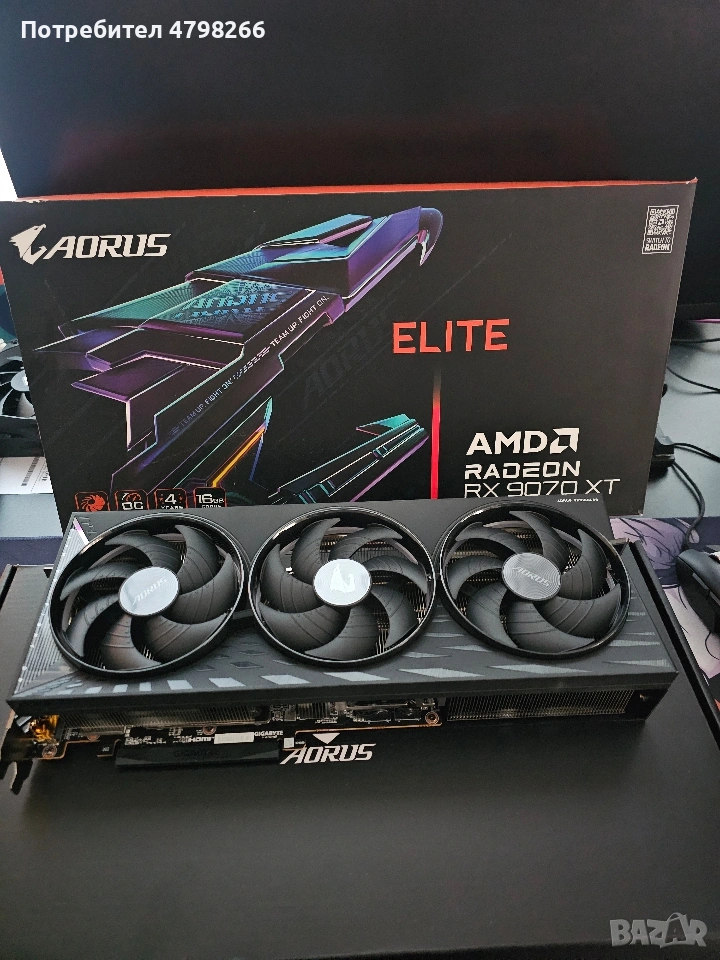 Продавам горепосочената видео карта GIGABYTE AORUS RADEON RX 9070 XT ELITE с 16GB памет GDDR6. Картата е в отлично състояние, ползвана около 4 месеца ,оставаща гаранция 32 месеца към български търговец.
