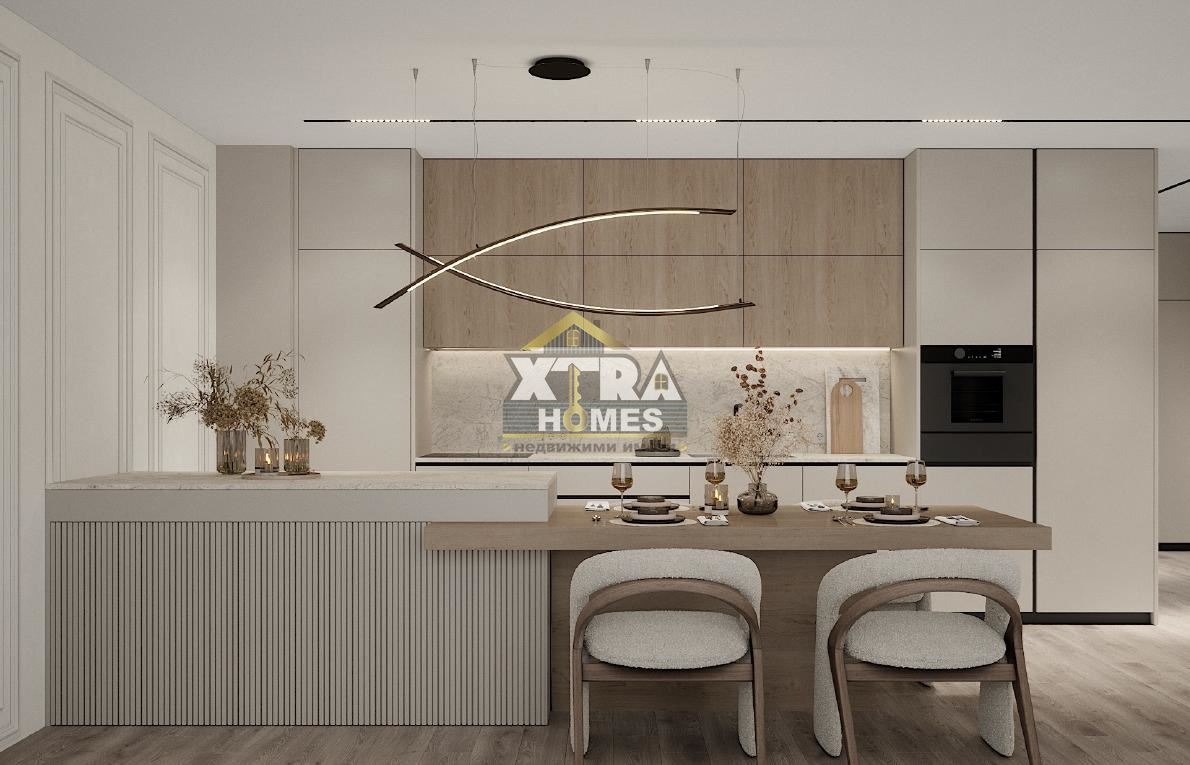 просторна дневна с кухненски бокс от 43 кв.м, създаваща естествен център на дома и чудесно място за семейни моменти и срещи с приятели 🛋️