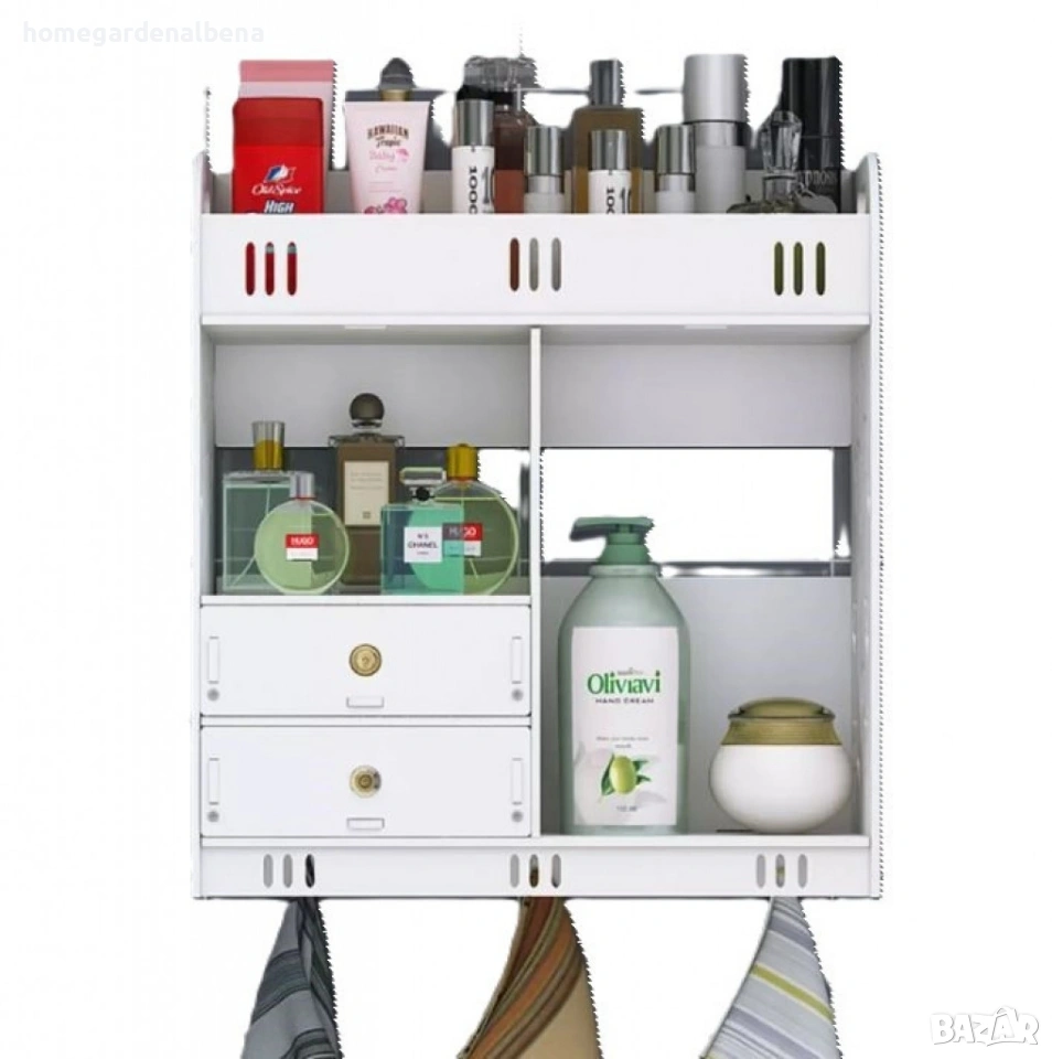 3 отворени рафта – за парфюми, сапуни или декорация.