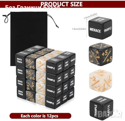 Нови 48 броя MTG зарчета броячи за Magic The Gathering с торбичка за настолни игри 16 мм