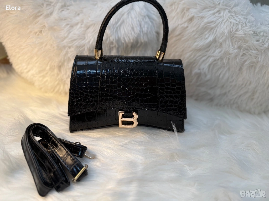 Черна дамска чанта с модерен и луксозен вид. Удобна, стилна и привличаща вниманието.