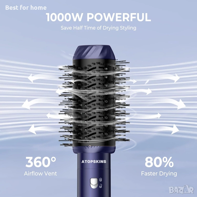 Atopskins Air Styler 6-в-1 стилизатор за коса с кръгла четка 1000 W, четка за топъл въздух, четка за сешоар, сешоар, маша, четка за изправяне, стилизатор за коса с въздух за всички типове коса, сушене.