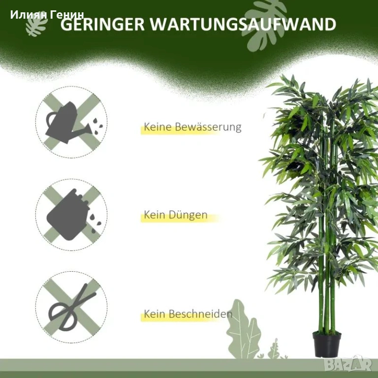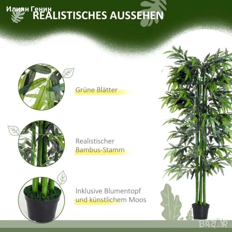 Реалистичен външен вид: Нашето изключително реалистично бамбуково дърво ще придаде неустоима елегантност на всяка обстановка и ще плени гостите ви с уникалния си чар и стил. Нашите изкуствени растения са идеални както за вътрешна, така и за външна употреба.