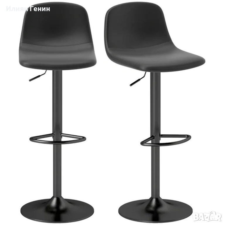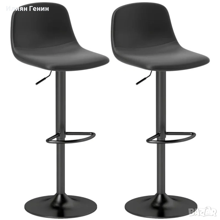Комплект от 2 бар стола HOMCOM, бар столове с тапицерия от изкуствена кожа, въртящи се, с облегалка и поставка за крака, метална основа, черни - 90.00 €.