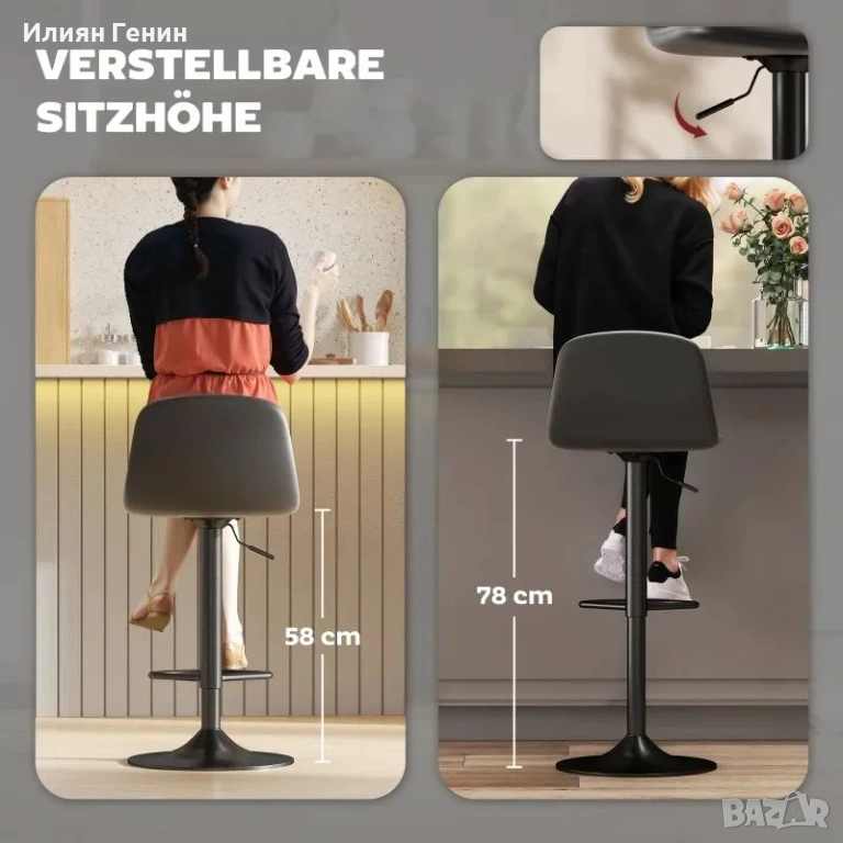✔ Въртящата се на 360° седалка на бар стола позволява лесно регулиране на посоката.