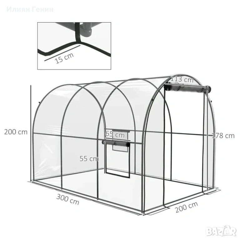 ✔ Общи размери: 300Д x 200Ш x 200В см