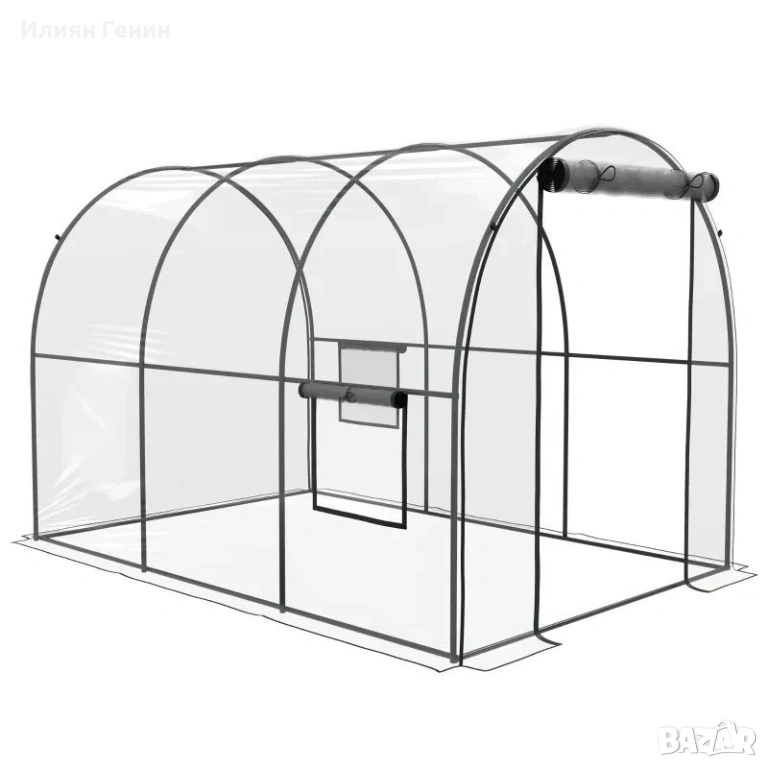 Тунелна оранжерия Outsunny Garden 6 м² 3Д x 2Ш x 2В м с подсилена тръбна рамка, ролетна врата, 2 ролетни прозореца - прозрачна - 90.00 €.