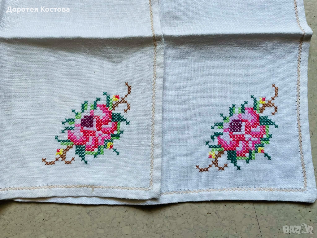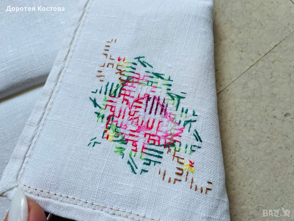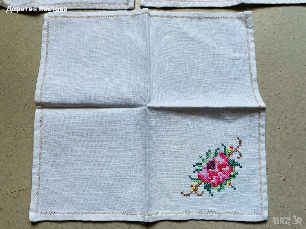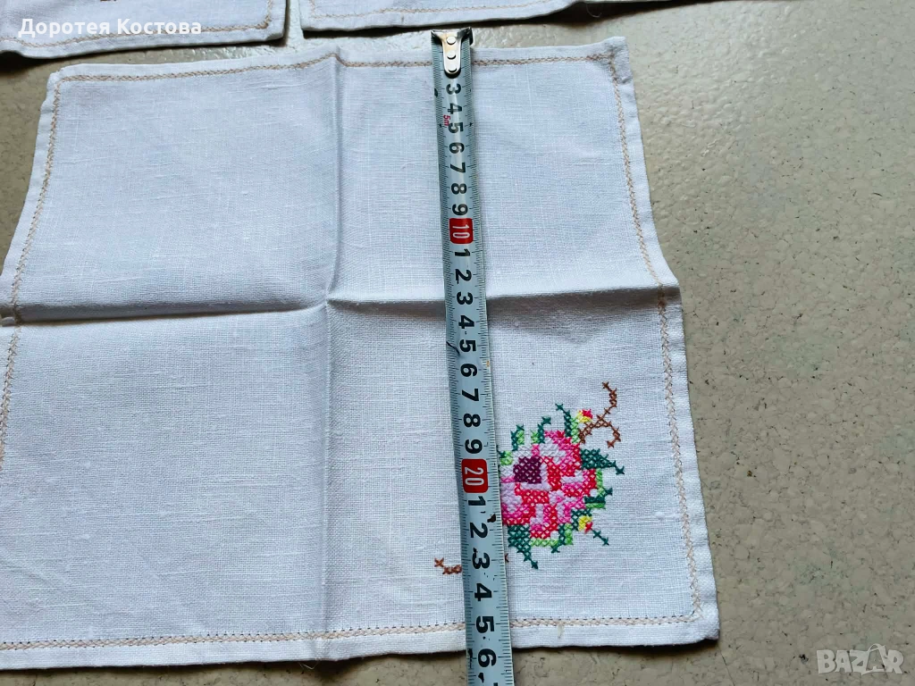 Красиви ръчно бродирани салфетки с рози от Англия, 5 бр, → Обява 54211030