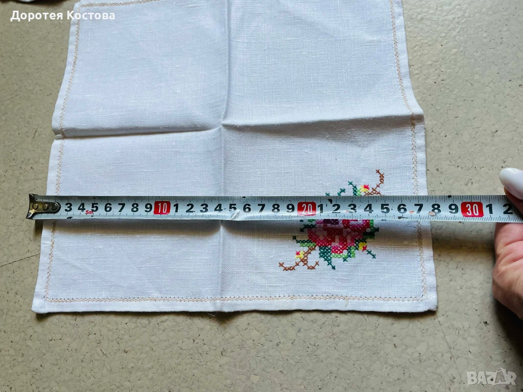 Красиви ръчно бродирани салфетки с рози от Англия, 5 бр, размерите са на снимките. Без забележки са, има само на 1-2 места леко пожълтяване от стоенето / лесна се изпира /. Цена - 15 евро / 29.34 лв.