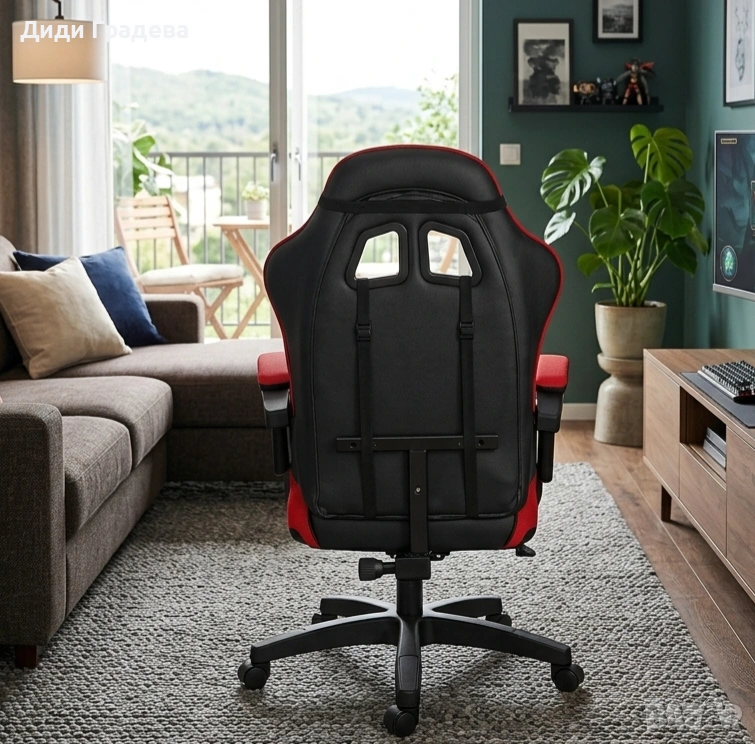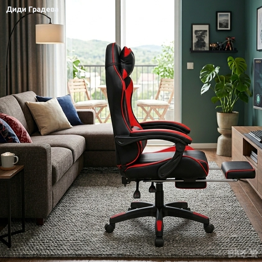 Дизайн: Геймърски профил с ергономична форма и подвижна поставка за крака.