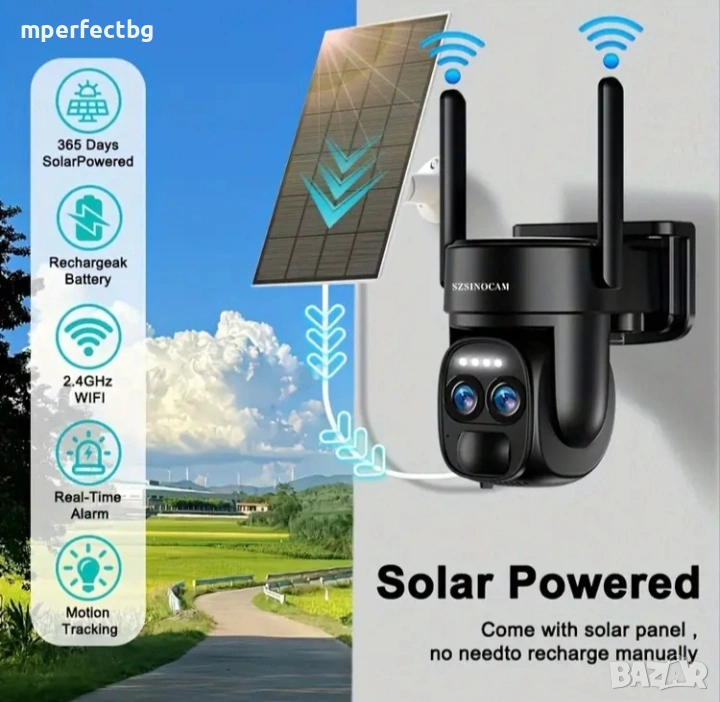 Възползвайте се от слънчевата енергия с високоефективен соларен панел, елиминирайки нуждата от честа смяна на батериите и осигурявайки 24/7 работа дори в отдалечени райони.