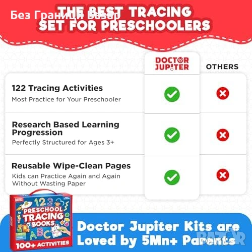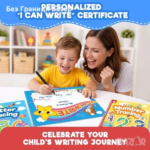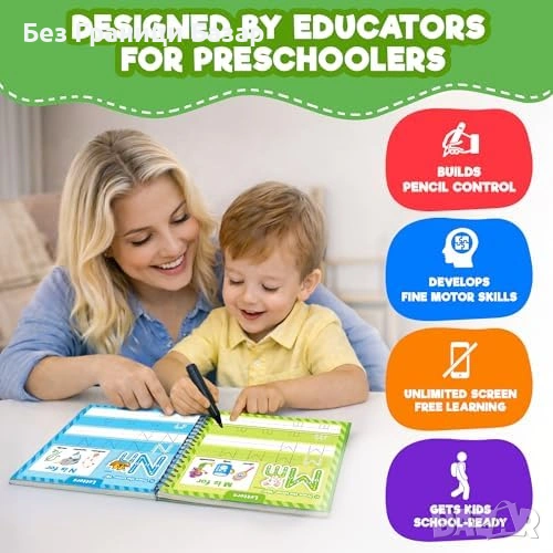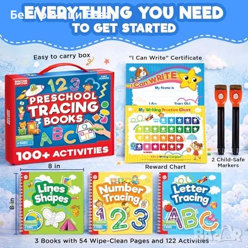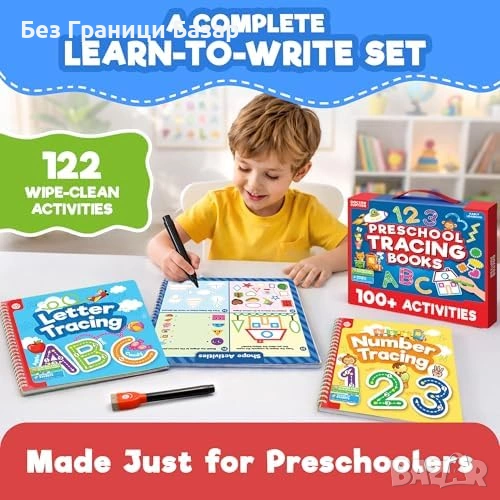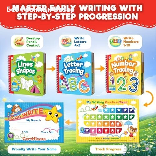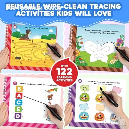 Нов Образователен комплект 3 Детски книги за писане и изтриване 3-6 години с маркери многократни