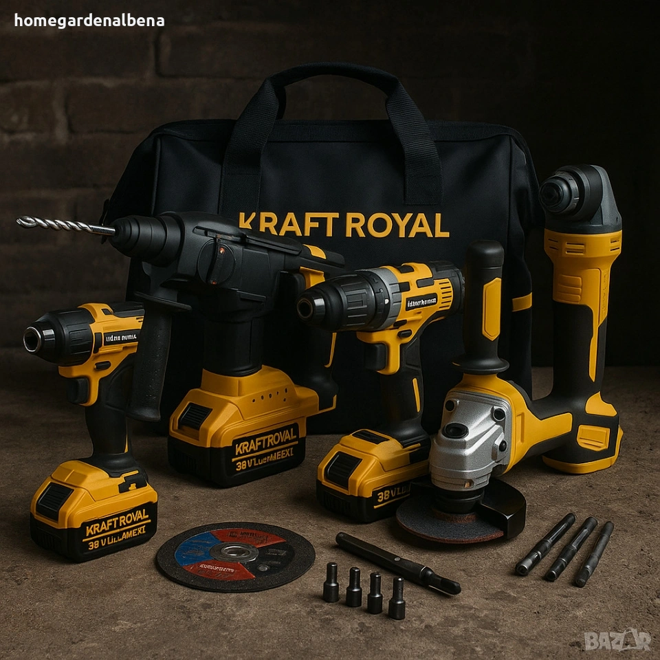 Оборудвайте се като професионалист с този мощен и универсален комплект от 4 основни инструмента! Всички машини работят на мощна 36V платформа, осигурявайки ви свобода на движение без кабели и мощност, която не отстъпва на електрическите модели. Идеалният избор за строителни дейности, авторемонти и монтажни услуги.