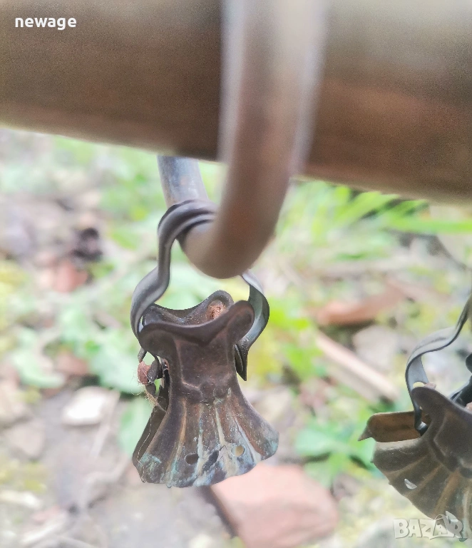 Състояние: Без изкривявания и със запазена благородна патина. Халките са достатъчни за нормално разпределение на пердетата върху 4-5 прозореца.