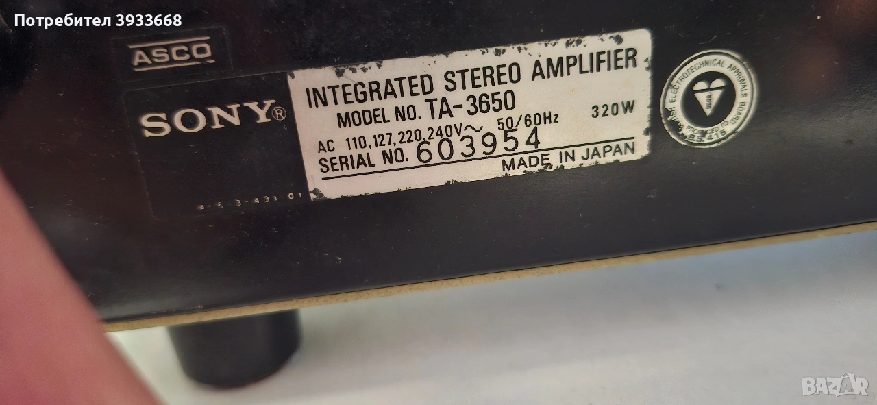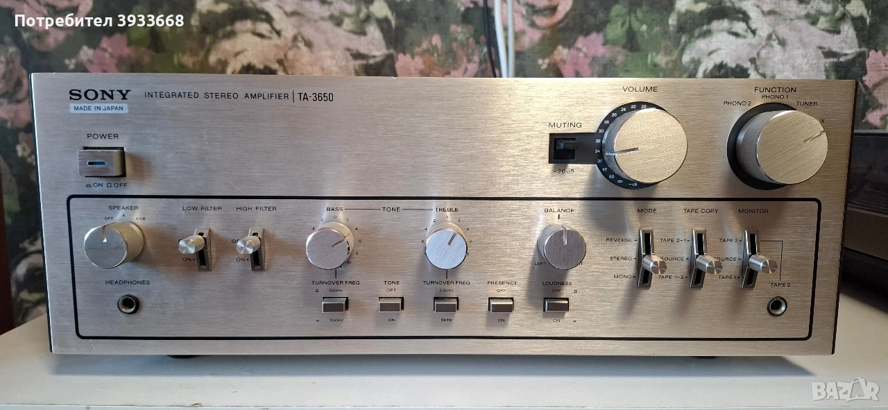 Усилвател SONY TA3650, личен компонент, добър външен вид с много леки забележки.