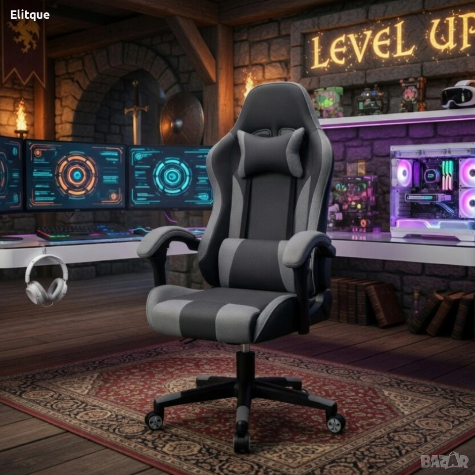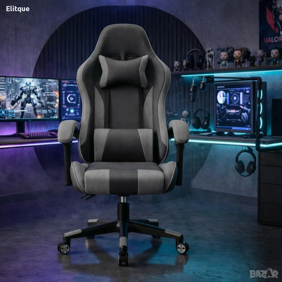 Ергономичен офис и геймърски сив стол – Максимален комфорт за гърба и врата, регулируем