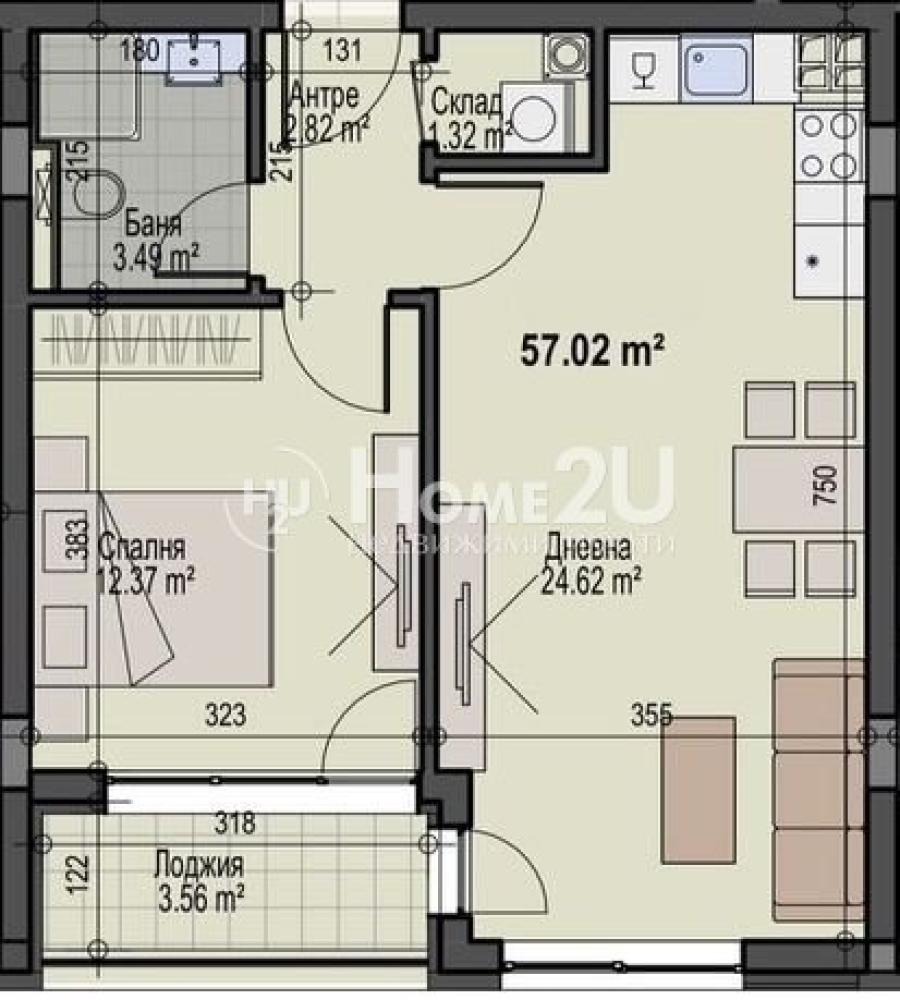 ПРЕД АКТ-16 !!! СРЕДЕН ЕТАЖ !!! КОМУНИКАТИВНА ЛОКАЦИЯ !!! Представяме Ви слънчев двустаен апартамент в най-предпочитана част на Манастирски ливади- изток на комуникативно място, в близост до спирки на градски транспорт, големи вериги хранителни магазини, детски градини. Бърз и лесен достъп до околовръстен път и бул.България. Имотът е с площ от 67 кв.м., 57 кв.м., от които застроена площ. Апартаментът е разположен на пети жилищен етаж от девет в сградата и е ориентиран към вътрешната и дворна част на сградата, на югозапад. Разпределението е както следва: входно антре, дневна с кухненски бокс, спалня, баня с тоалетна, склад и тераса. За ваше улеснение прилагаме схема на разпределение на имота. Жилището предлага комбинация от функционалност и стил, като се намира в сграда с модерен дизайн и качествено изпълнение. Отоплението е предвидено да бъде на газ. Сградата е с издаден образец АКТ-15, а АКТ-16 се очаква пролетта на 2026г.