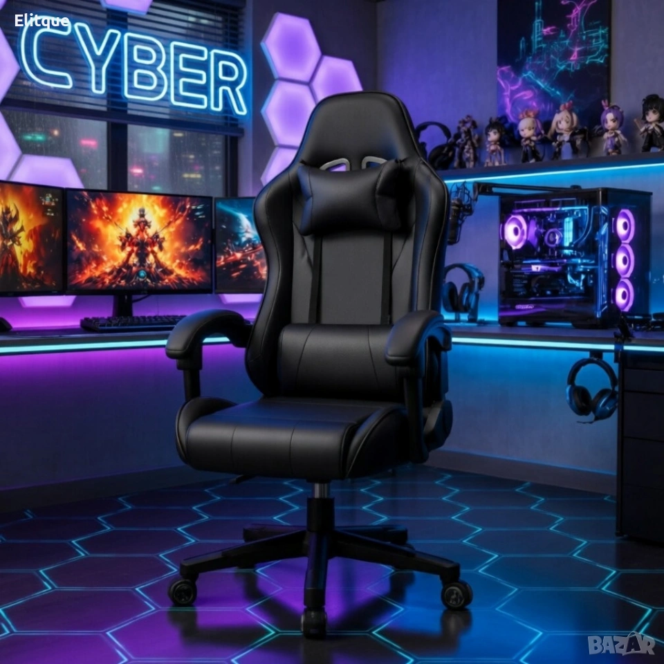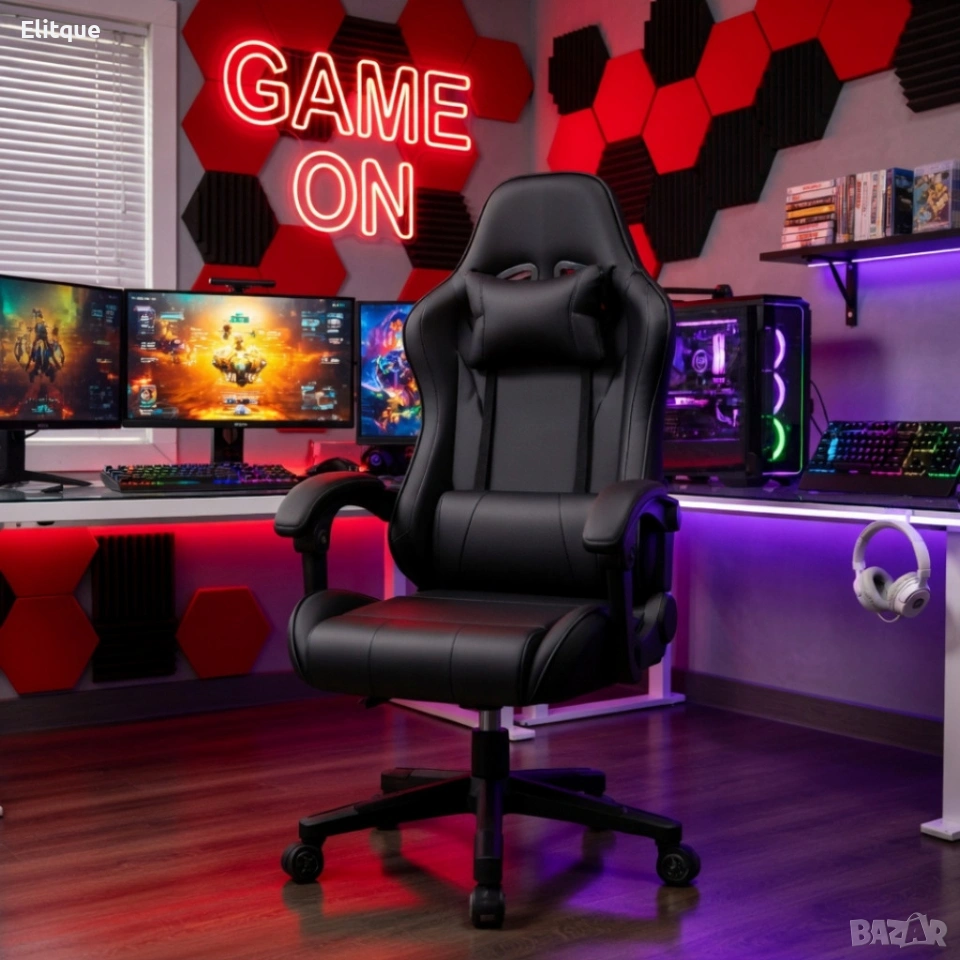 Ергономичен офис и геймърски черен стол – Максимален комфорт за гърба и врата, регулируем