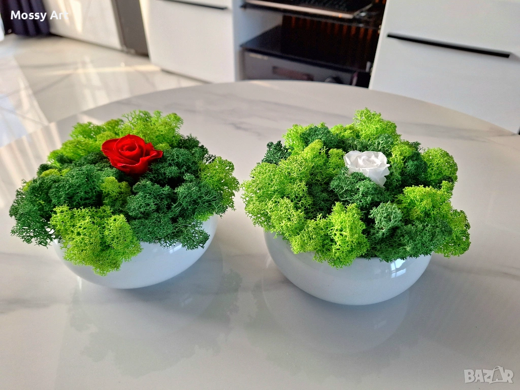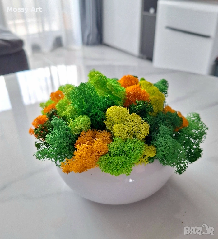 Скандинавският мъх НЕ изисква грижи, не се пръска с вода. Издържа над 10 години! Цени от 5€