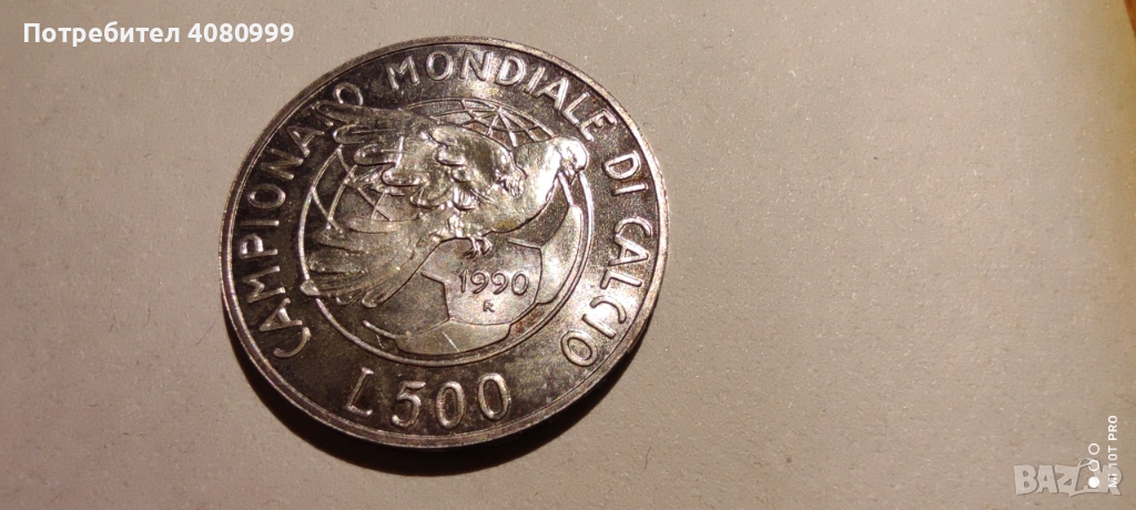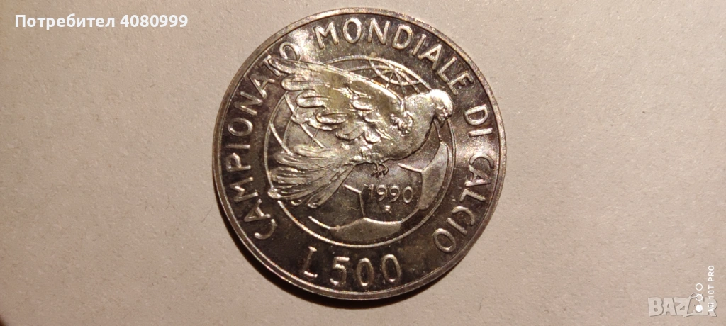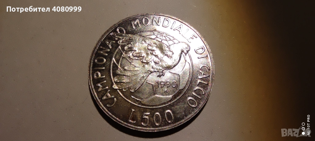 Италия 500 лири 1990 "Световно първенство по футбол" → Обява 54212309
