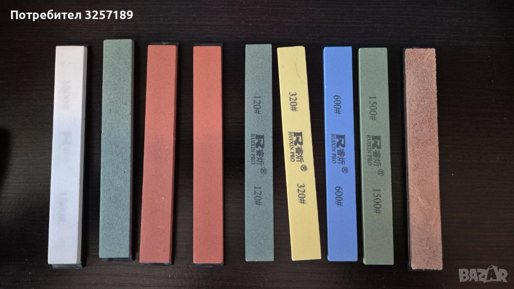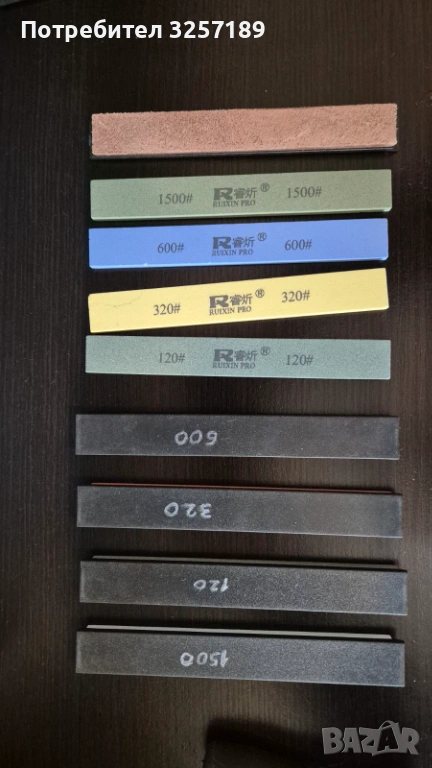 различна степен на абразивност (#120, #320, #600, #1500). Единият комплект е