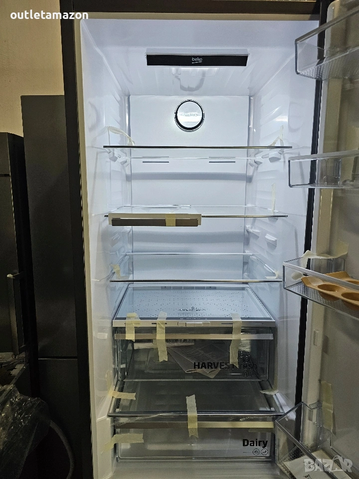 Нов хладилник Beko - B5RCNA405ZG .Total NF, ProSmart™. инверторен компресор, дигитален сензорен бутон на вратата, метално сив, AeroFlow, HarvestFresh, Капацитет 355 литра. Размери на продукта