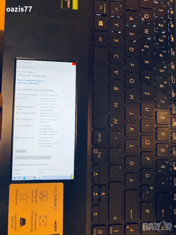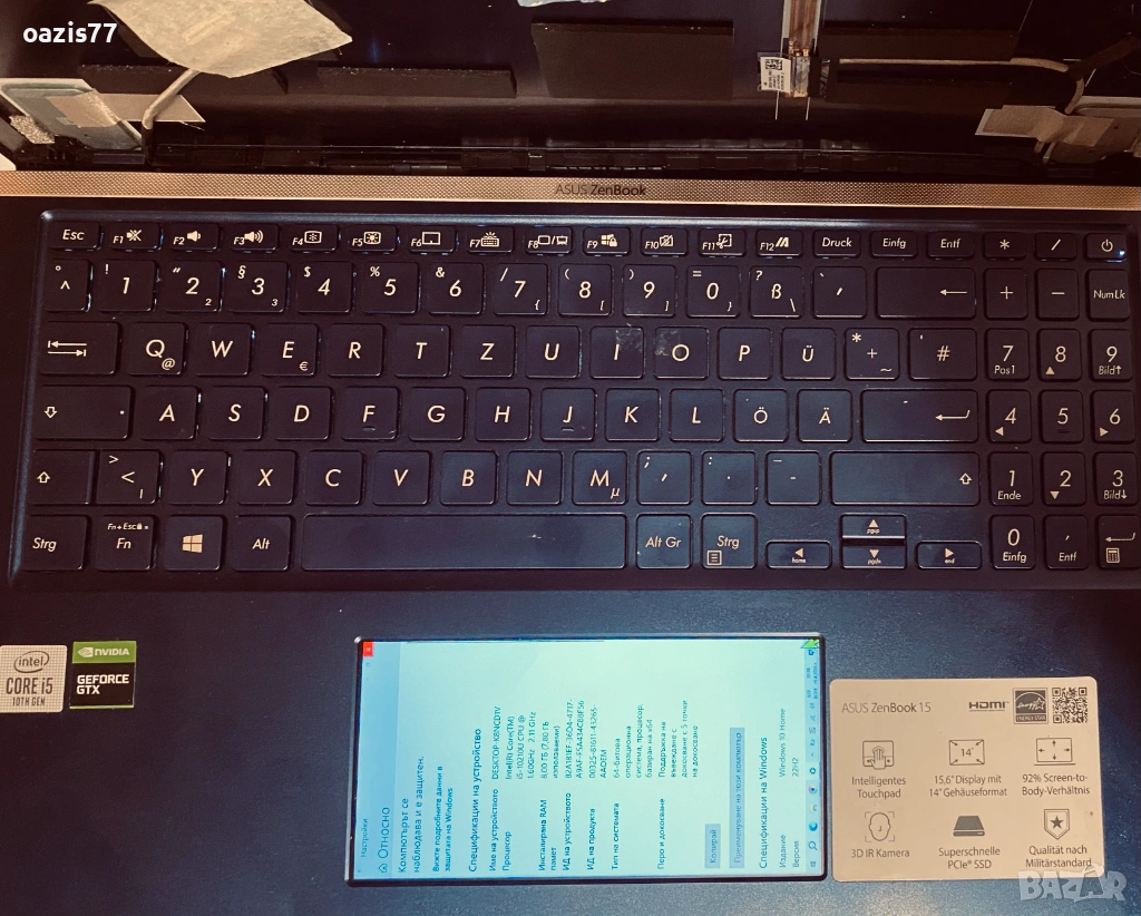 Лаптоп 15,6 ин Asus Zenbook 15ux534 за части процесор i5-10210U -86 евро → Обява 54212483