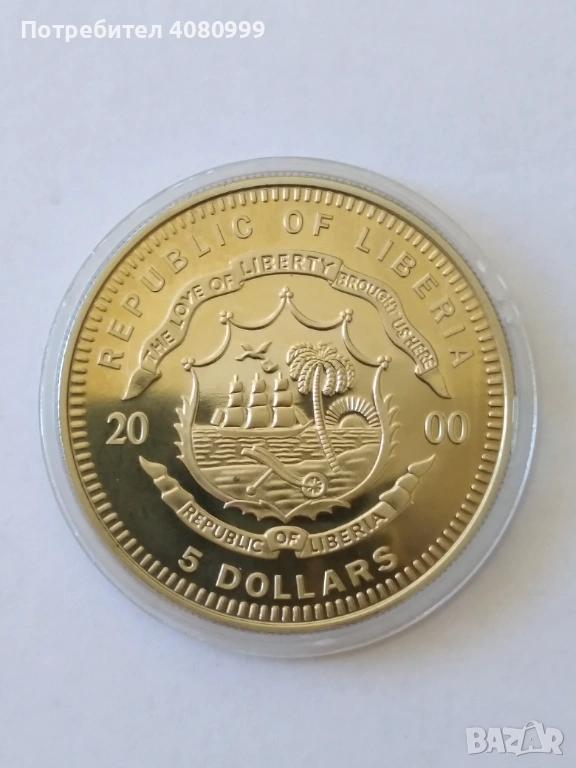 Либерия 5 долара 2000, снимка 1 - Нумизматика и бонистика - 54212487 Либерия 5 долара 2000, снимка 2 - Нумизматика и бонистика - 54212487 1/2