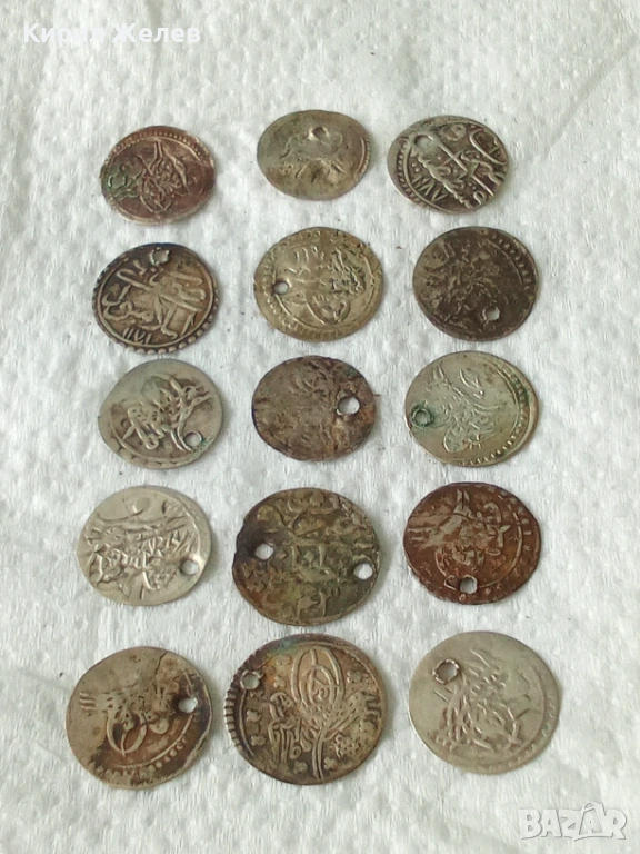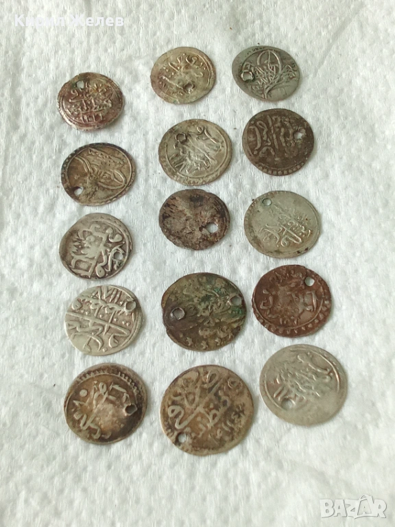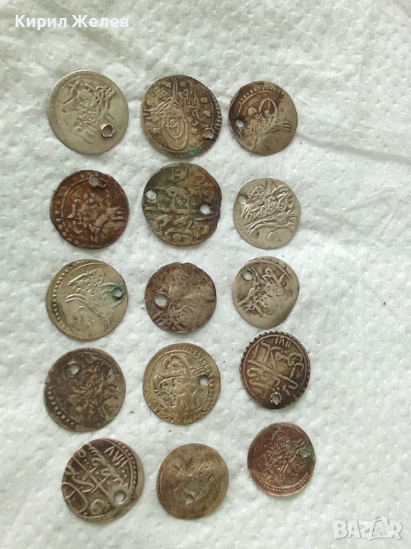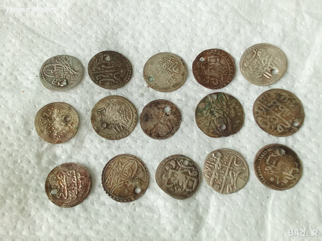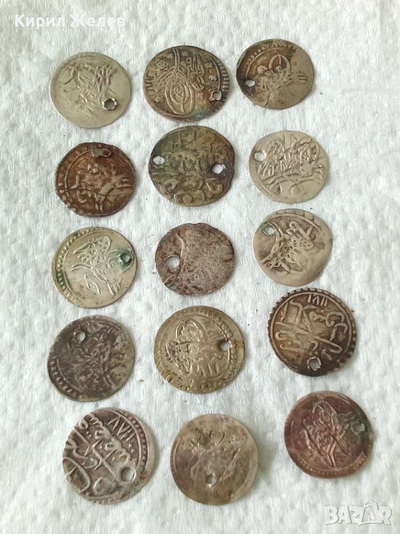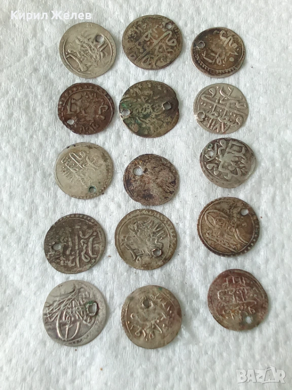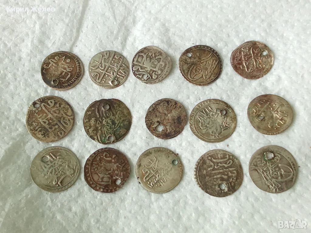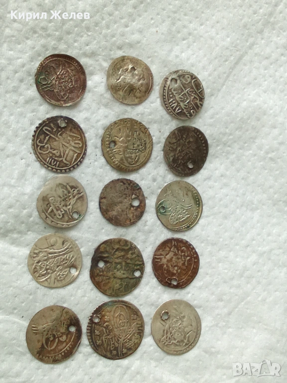 Лот сребърни монети 15 броя продупчени за носия забрадка престилка 46149 → Обява 54212681