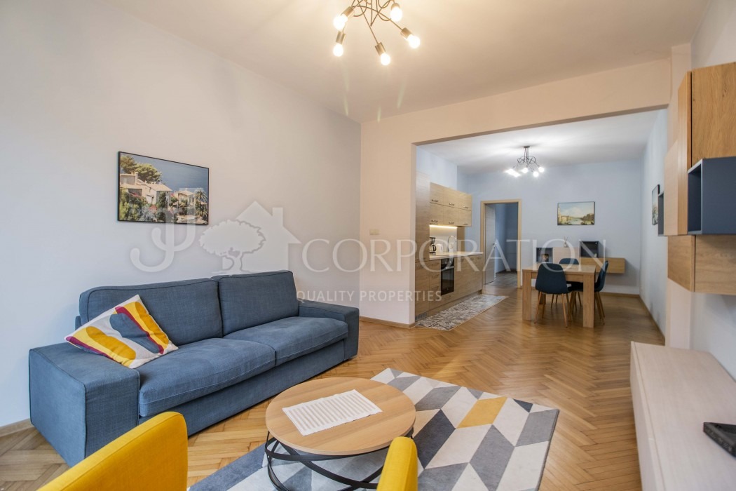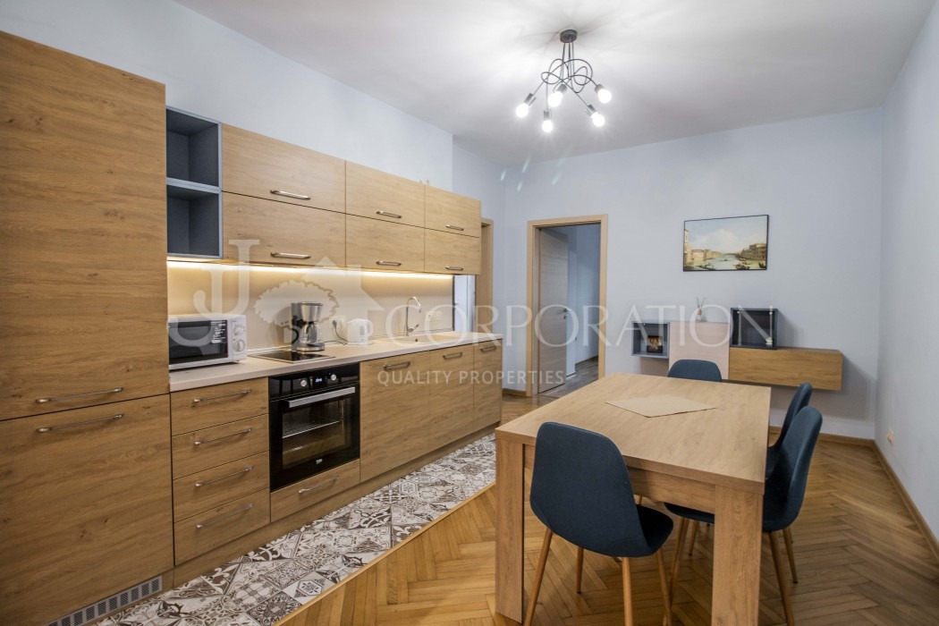 Предлагаме на Вашето внимание стилен и луксозно обзаведен тристаен апартамент, разположен в сърцето на столицата на ул. Г. С. Раковски , в непосредствена близост до НДК, метростанция, множество заведения, магазини и културни обекти. Жилището се намира на четвърти етаж от общо шест в отлично поддържана, санирана тухлена сграда с асансьор и контролиран достъп, което осигурява спокойствие и сигурност на живущите.