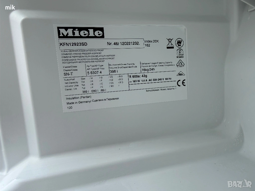 Хладилник с фризер Миеле. Като нов! Закупен от Германия. С инверторен мотор.