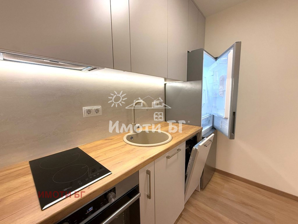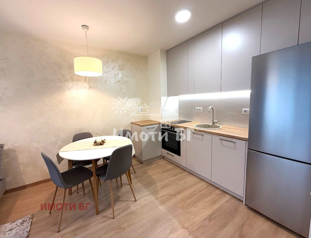 Разпределение: входно антре, хол с кухненски бокс и трапезария, спално помещение, баня с тоалетна, мокро помещение и тераса. Предлага се изцяло обзаведен и завършен по дизайнерски проект, като на разположение на наемателите ще има: ПЕРАЛНЯ СЪС СУШИЛНЯ, кухня с вградени уреди, включително СЪДОМИЯЛНА МАШИНА, интелигентно газово котле с WiFi и ПОДОВО ОТОПЛЕНИЕ, климатик с WiFi, ТЕЛЕВИЗОР 42', blackout пердета и др.