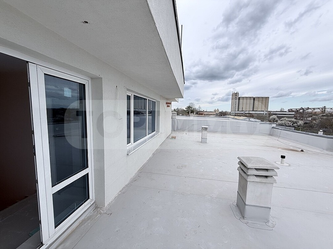 Апартаментът, който представяме е разположен на четвърти етаж, с обща площ 80,45 кв.м и чиста площ 70,28 кв.м. Състои се от коридор, всекидневна с трапезария и кухня, две спални и баня с тоалетна. Има излаз на покрива на сграда, който може да бъде използван.