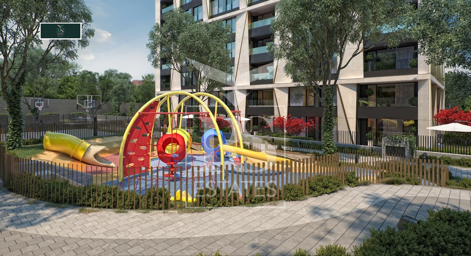Комплексът предлага: приблизително 8 000 кв.м частен парк, богато озеленяване, зони за отдих с фонтани, две детски площадки, мултифункционално спортно игрище, открит фитнес, алея за джогинг, ресторант и добре поддържани общи части. Осигурени са видеонаблюдение, контрол на достъпа и денонощна охрана, които гарантират спокойствие и сигурност на живущите.