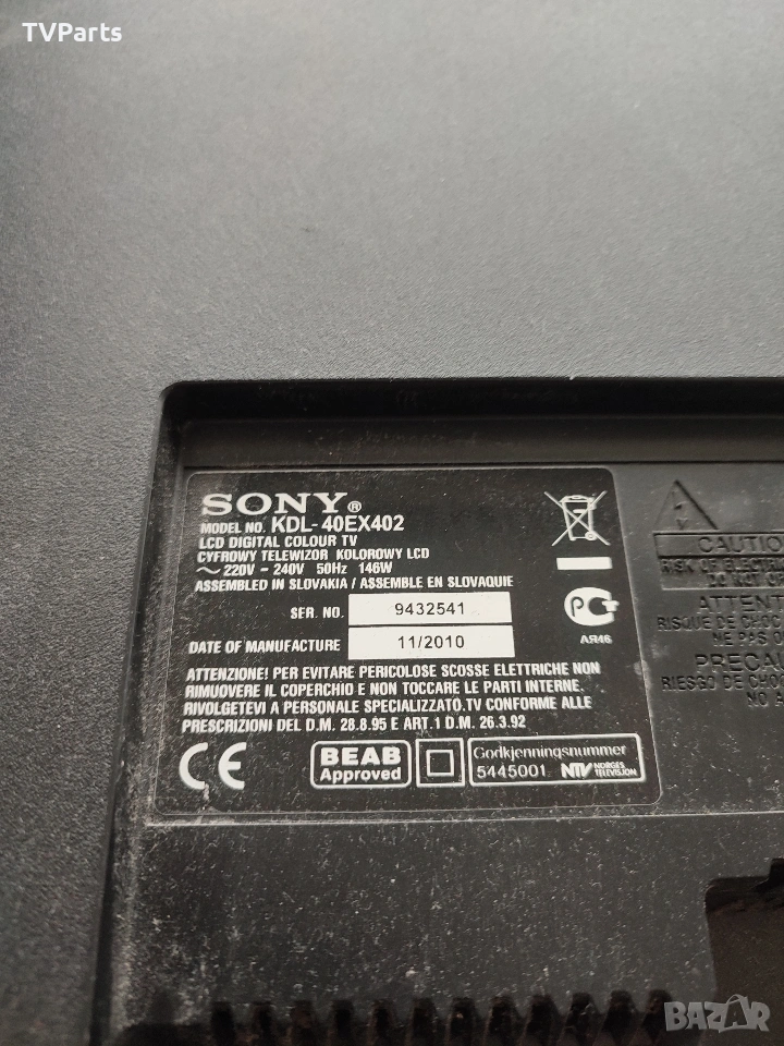 Телевизор Sony KDL-40EX402 на части, снимка 1 - Телевизори - 54213113 Телевизор Sony KDL-40EX402 на части, снимка 2 - Телевизори - 54213113 Телевизор Sony KDL-40EX402 на части, снимка 3 - Телевизори - 54213113 1/3