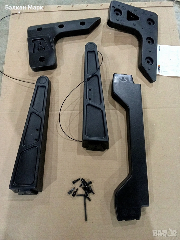 Метални свързващи елементи и малки винтове за сглобяване на конструкцията (видно на снимките).